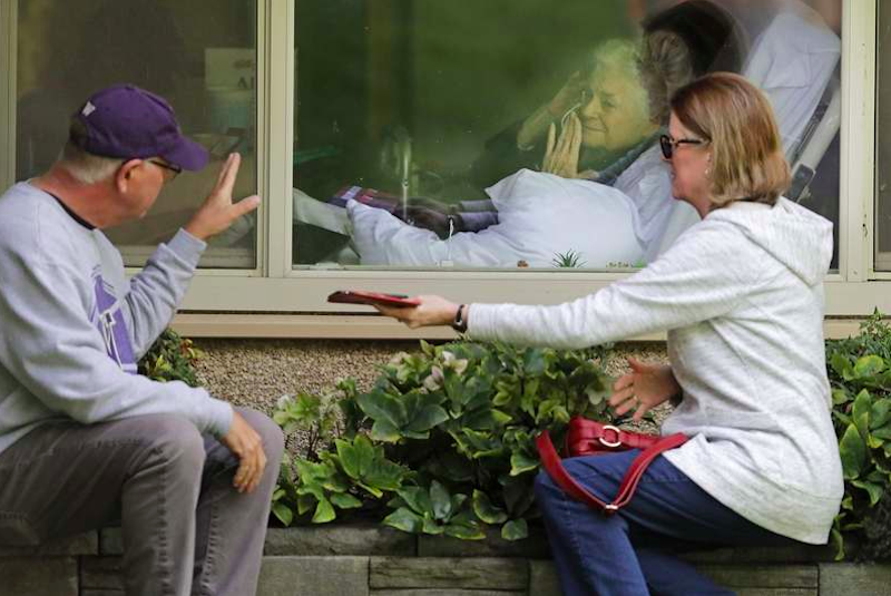 As U.S. nursing homes banned visitors to stall the coronavirus spread, AP photographer Ted S. Warren documented family members trying to communicate with their relatives at the Life Care Center in Kirkland, Washington, one of the worst-hit places in the country, with 63 confirmed infections and 23 deaths. Warren captured a tender moment as nursing home resident Judie Shape, who has tested positive for the coronavirus, blew a kiss to her son-in-law through a glass window on March 11. Warren angled the shot to escape the glare of the window and keep himself out of the reflection while conveying the new reality of families struggling to maintain contact.