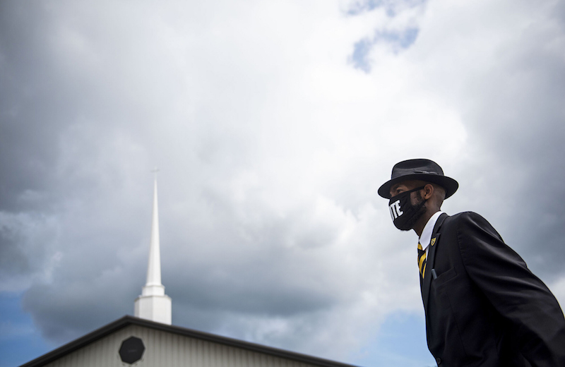 The power of the still image is that sometimes a photographer can show us what we don’t see or what we need to see. Shooting for The Fayetteville Observer, photographer Melissa Sue Gerrits spotted this ethereal moment on June 6 outside of Cape Fear Conference B Church, where thousands of people lined up for a memorial for George Floyd near his North Carolina birthplace, as his body traveled through there from Minneapolis, where he died in police custody, on the way to Houston, where he grew up. Gerrits’ remarkable photograph is one of many in “How Black Lives Matter Reached Every Corner of America,” a fascinating interactive display of the movement published by The New York Times that marries images, data and the poetic words of national enterprise correspondent Audra D.S. Burch. I got lost all weekend in these 250+ photos, starting with Gerrits’ stunner. Shooting from a low vantage point, Gerrits saw through the crowds to isolate the distinguished profile of a lone masked mourner leaning into the heavenly backdrop of a church steeple disappearing into the clouds. She wisely gave the photo room to breathe, conveying a moment that was solemn, majestic and otherworldly.