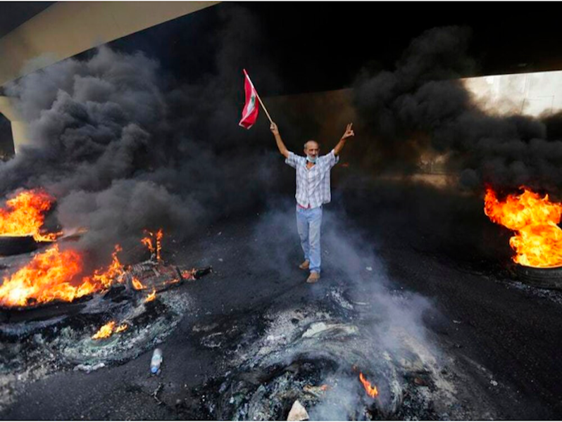 With mass protests circling the globe in Spain, Haiti, Hong Kong, Iraq, the United States and Chile, AP photographer Hassan Ammar documented the outrage on Oct. 18 with a photo of a solitary demonstrator in Beirut, Lebanon, where people burned tires and rallied against proposed new taxes amid a severe economic crisis. The isolation of the man and his peaceful hand gesture in contrast with the remnants of a more confrontational manifestation make a striking statement about our streets of discontent.
