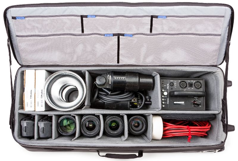 | Fully customizable interior with excess dividers to protect small and large lighting equipment, including C-stands in the Production Manager 50 |
