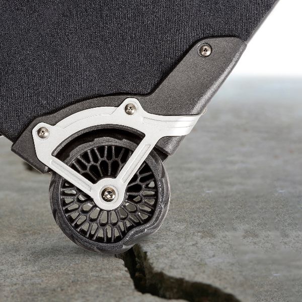 | Large shock-absorbing wheels reduce impact when rolling over rough surfaces. |